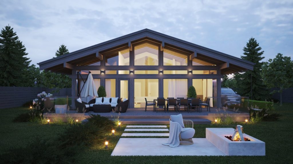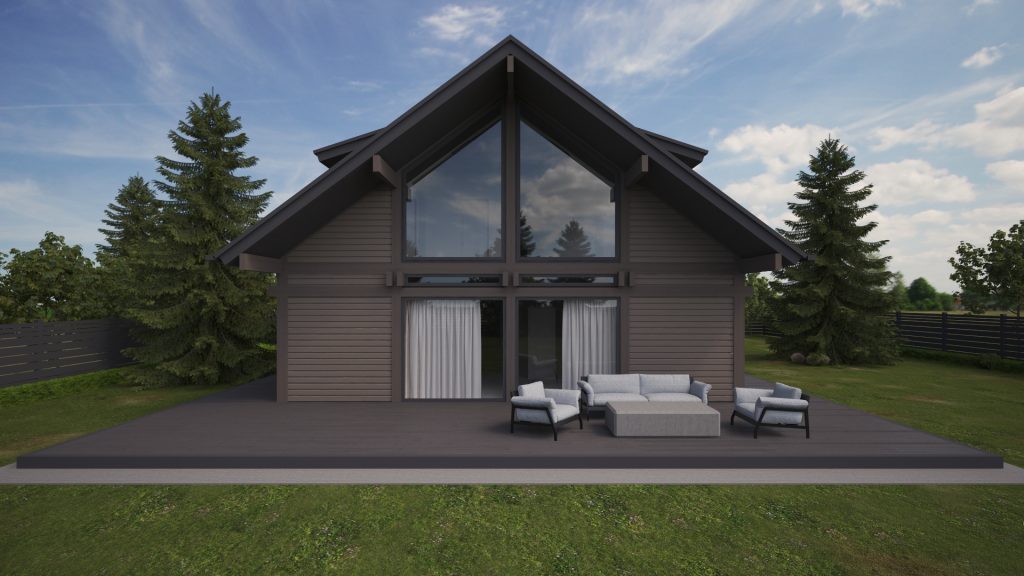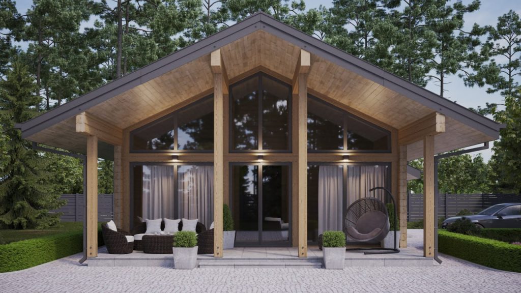 Несущую функцию выполняет прочная опорно-балочная система, а пространство между балками можно заполнять по нескольким вариантам: из клееного бруса, заполнение с помощью утеплителя. Это дает неограниченные возможности для планировки и создания светлых пространств с большими панорамными окнами.