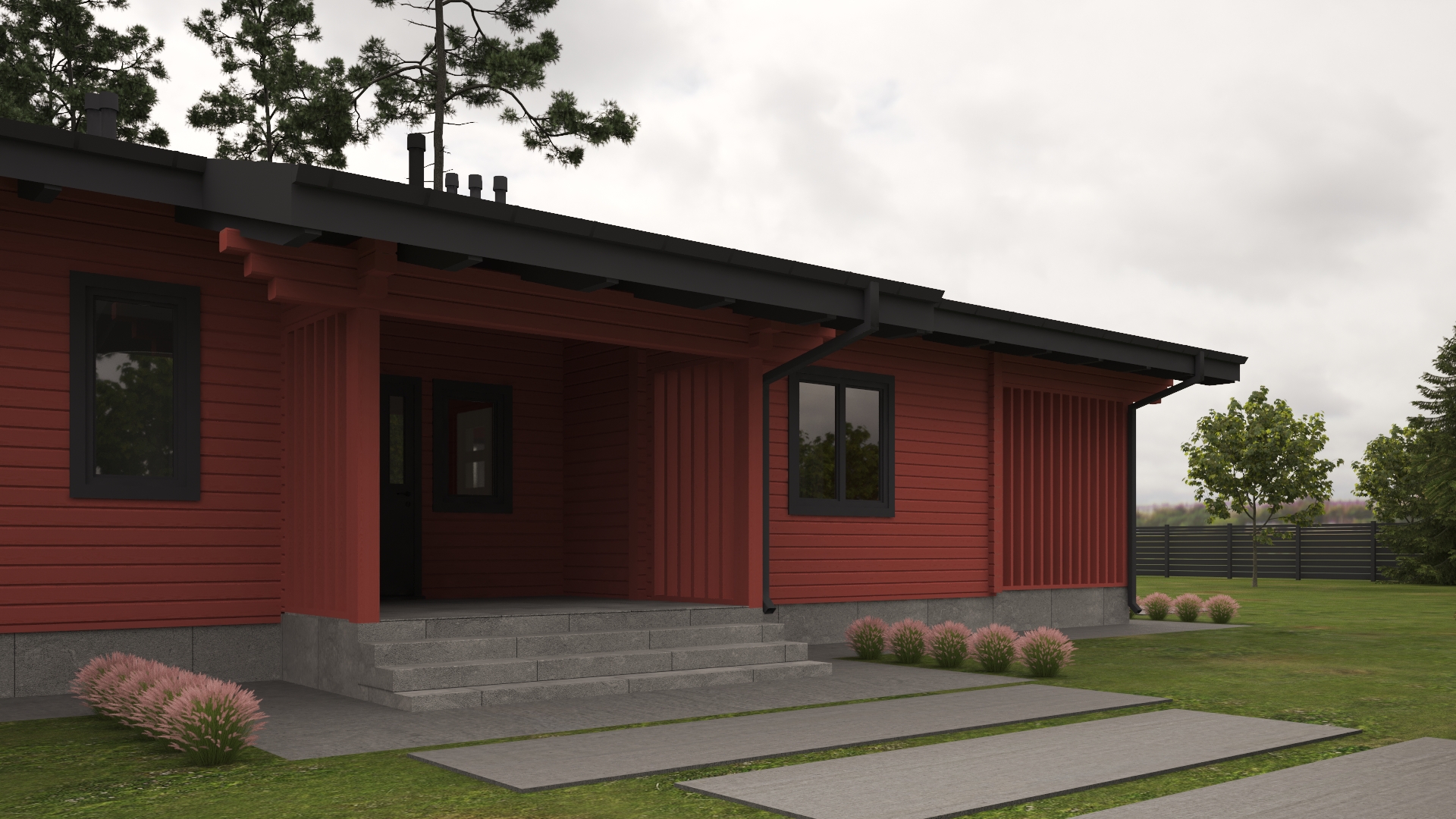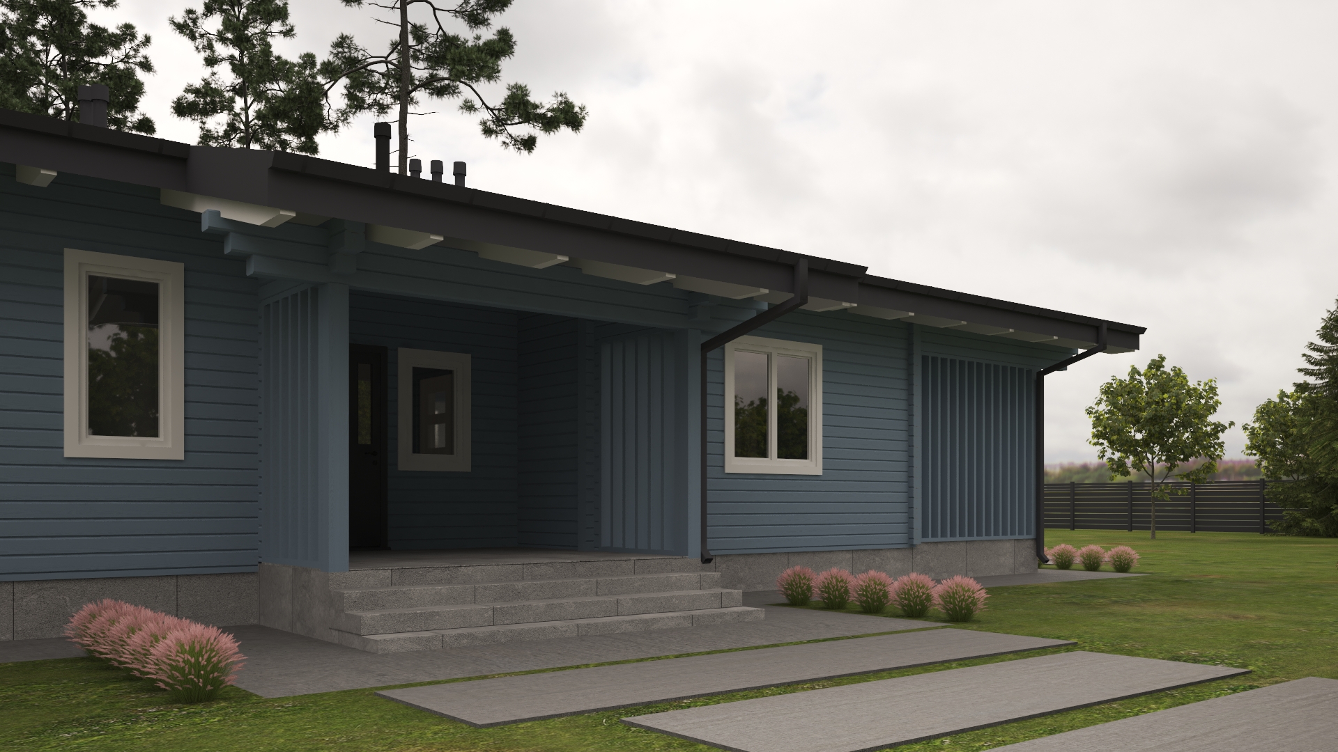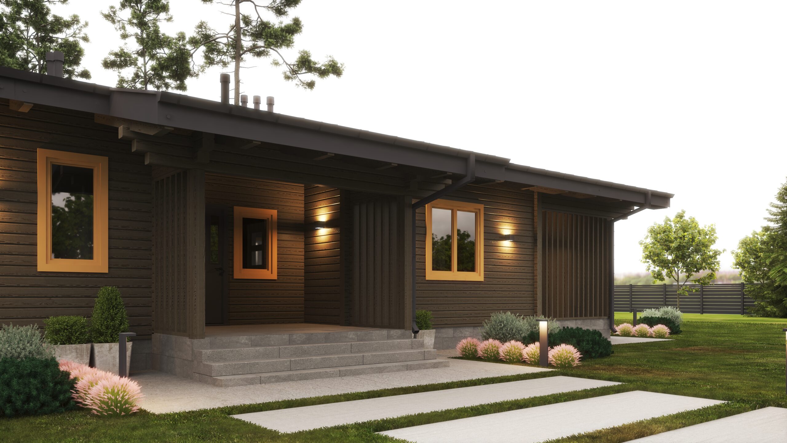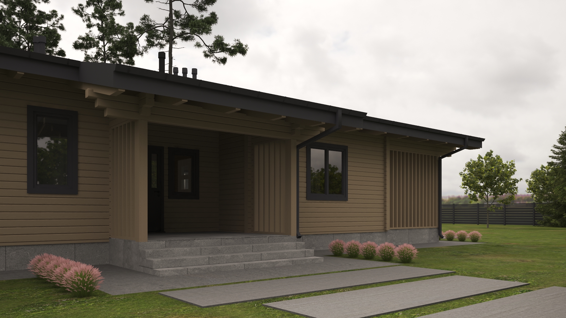 Одноэтажный дом с прекрасной эргономикой, в котором продумано все для проживания большой семьи. Объединенная гостиная и кухня с витражными окнами и выходом на террасу делают данную часть дома самой уютной, где все челны семьи будут проводить большую часть своего времени. Стоимость за домокомплект от 33 000 долларов США Стоимость за дом (теплый контур) от 63 700 долларов США