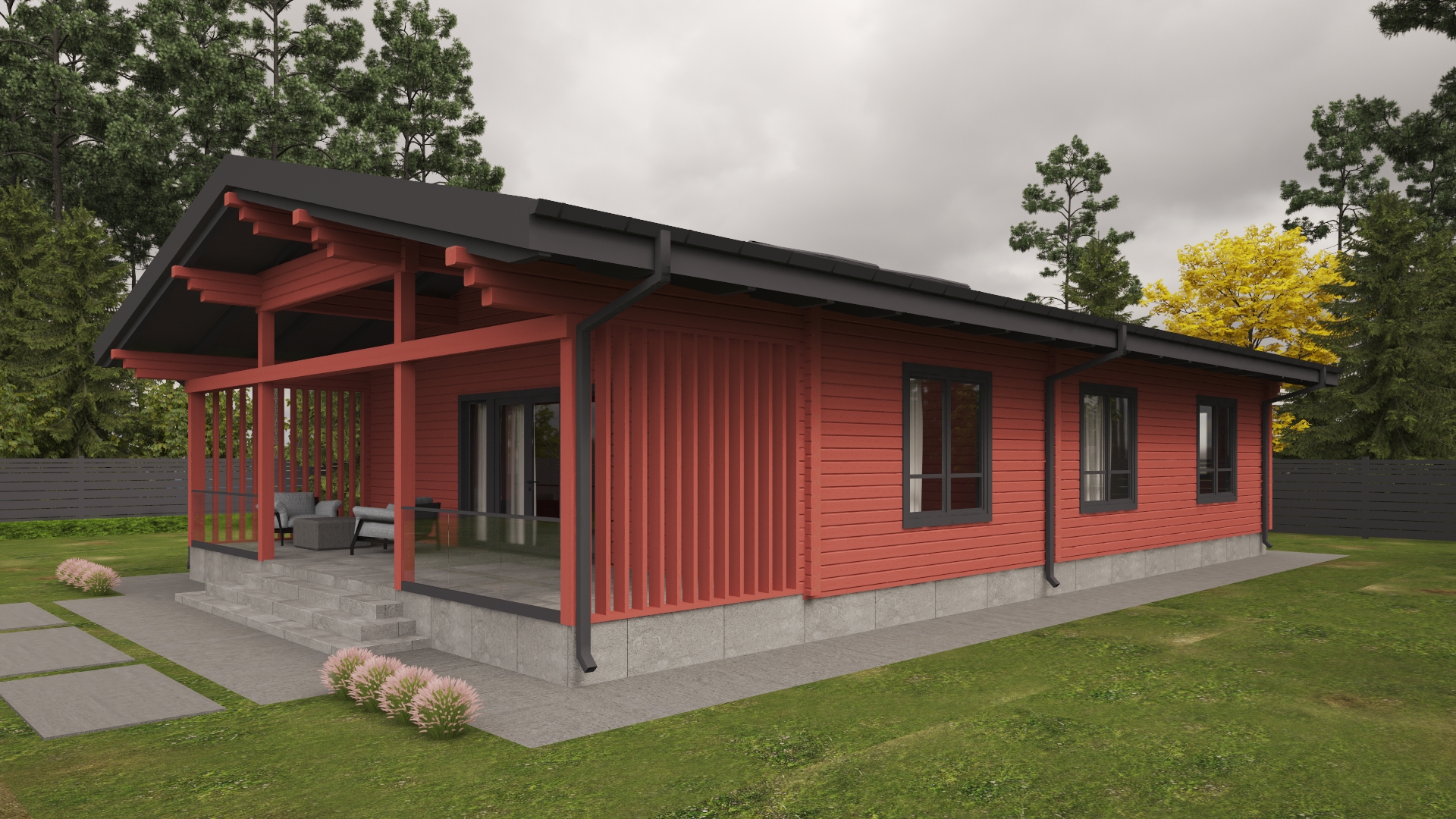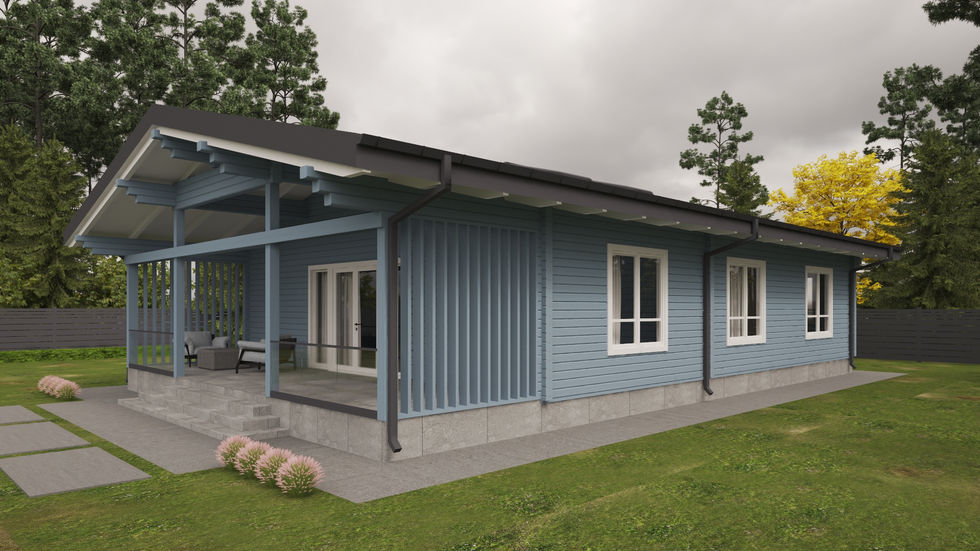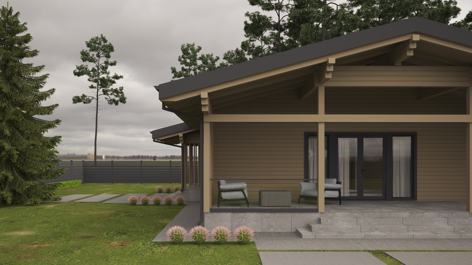 Одноэтажный дом с прекрасной эргономикой, в котором продумано все для проживания большой семьи. Объединенная гостиная и кухня с витражными окнами и выходом на террасу делают данную часть дома самой уютной, где все челны семьи будут проводить большую часть своего времени. Стоимость за домокомплект от 33 000 долларов США Стоимость за дом (теплый контур) от 63 700 долларов США