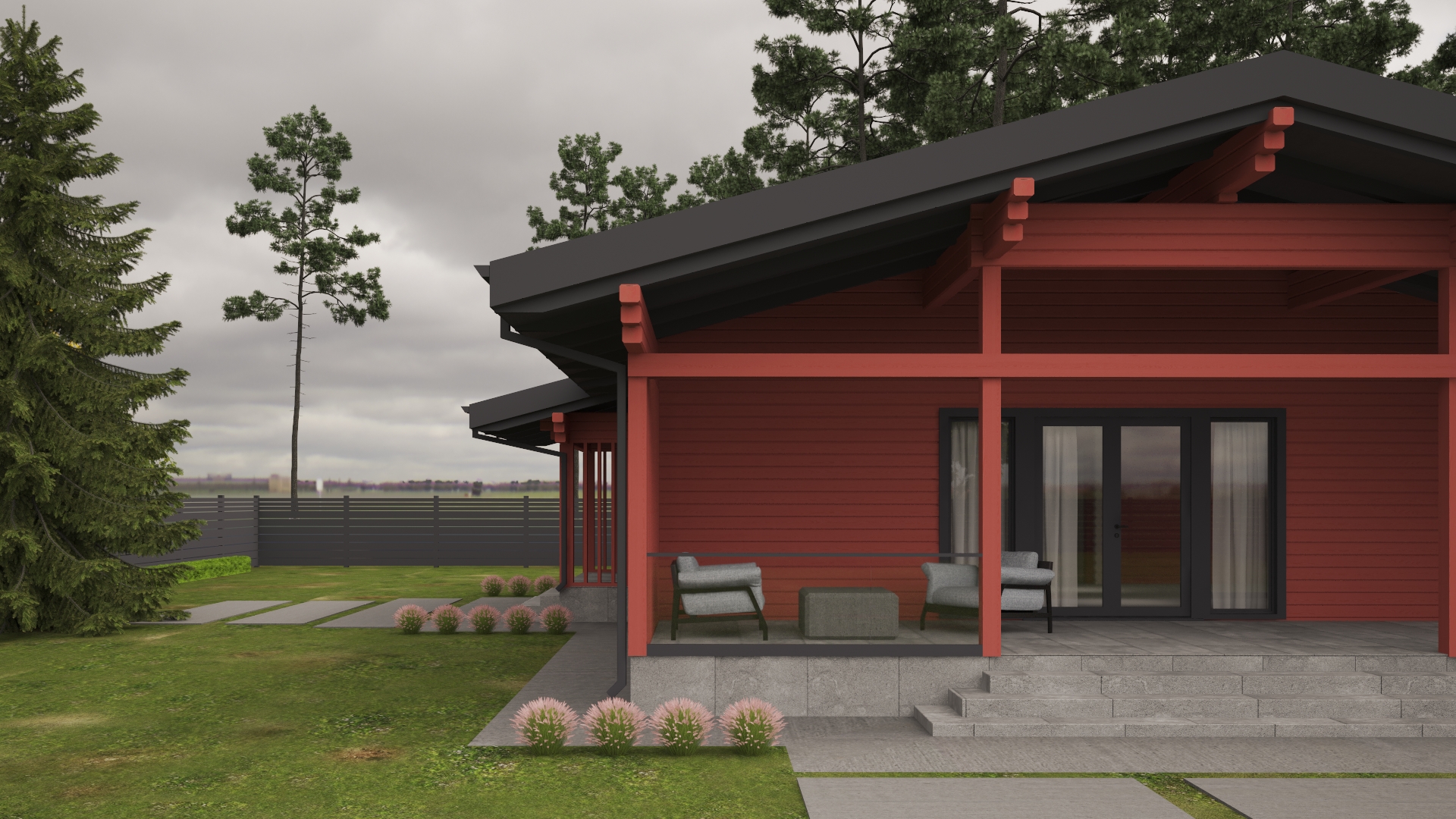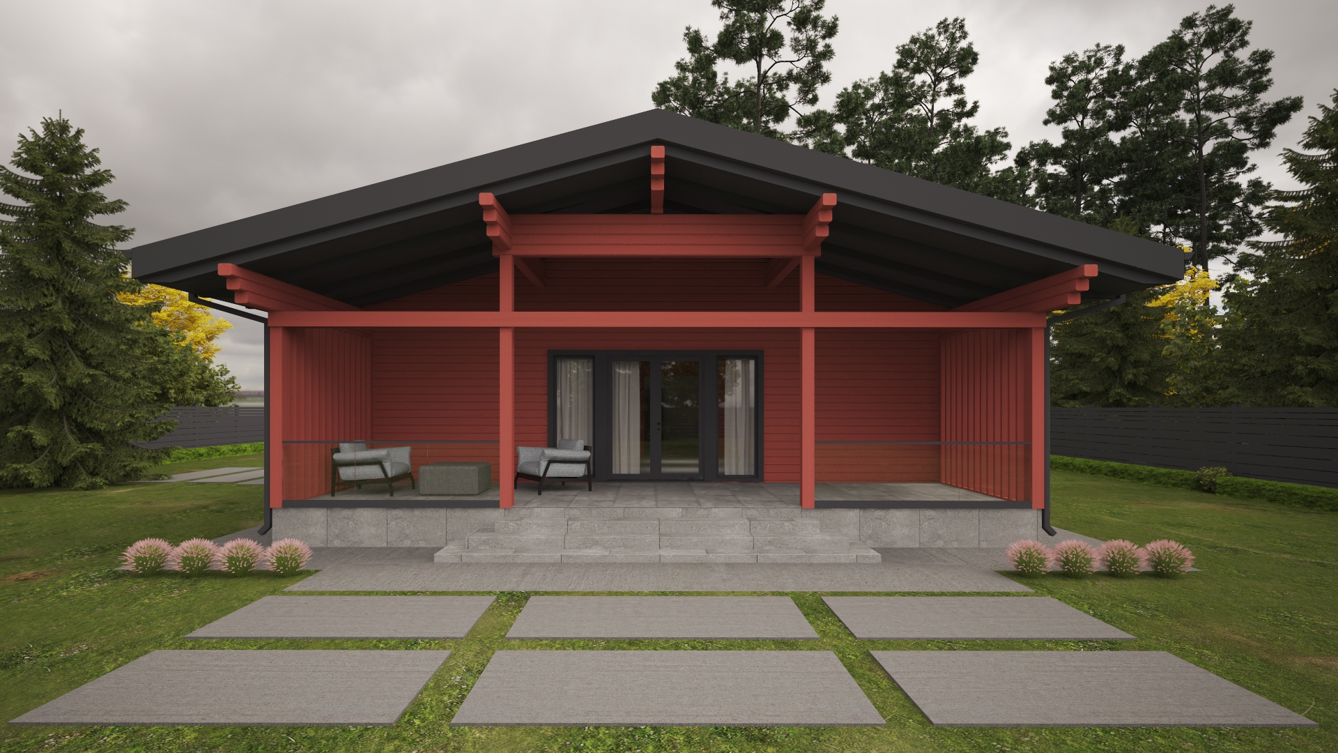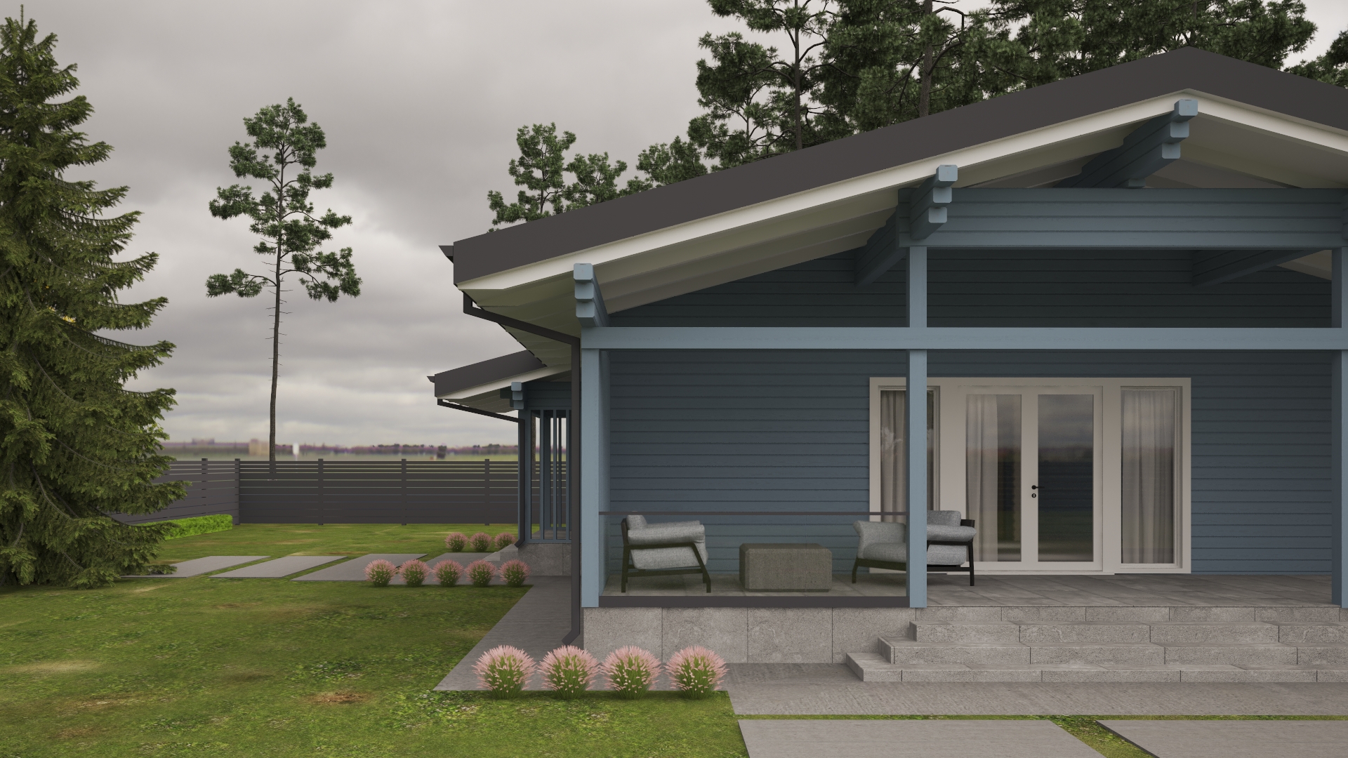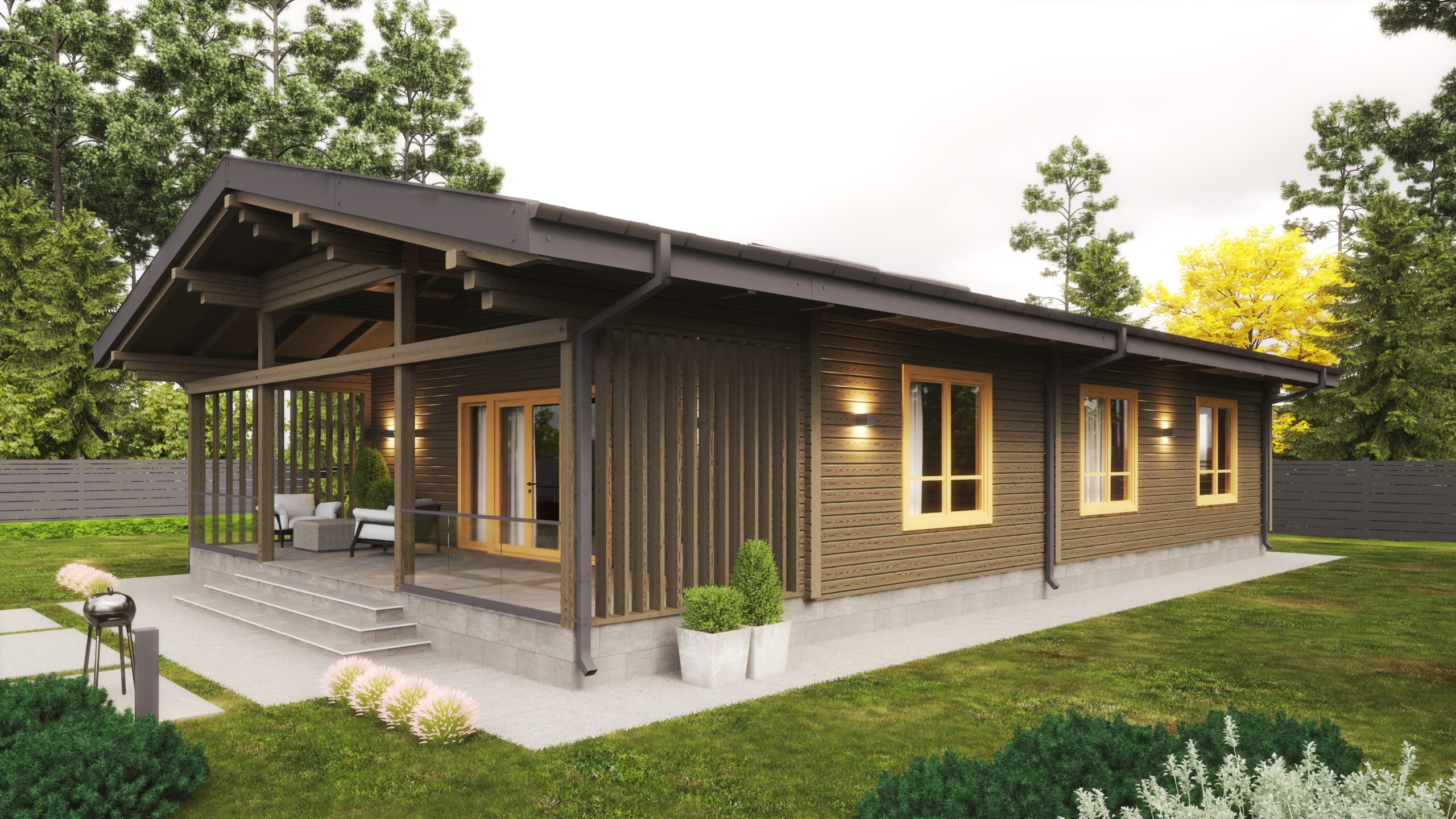 Одноэтажный дом с прекрасной эргономикой, в котором продумано все для проживания большой семьи. Объединенная гостиная и кухня с витражными окнами и выходом на террасу делают данную часть дома самой уютной, где все челны семьи будут проводить большую часть своего времени. Стоимость за домокомплект от 33 000 долларов США Стоимость за дом (теплый контур) от 63 700 долларов США